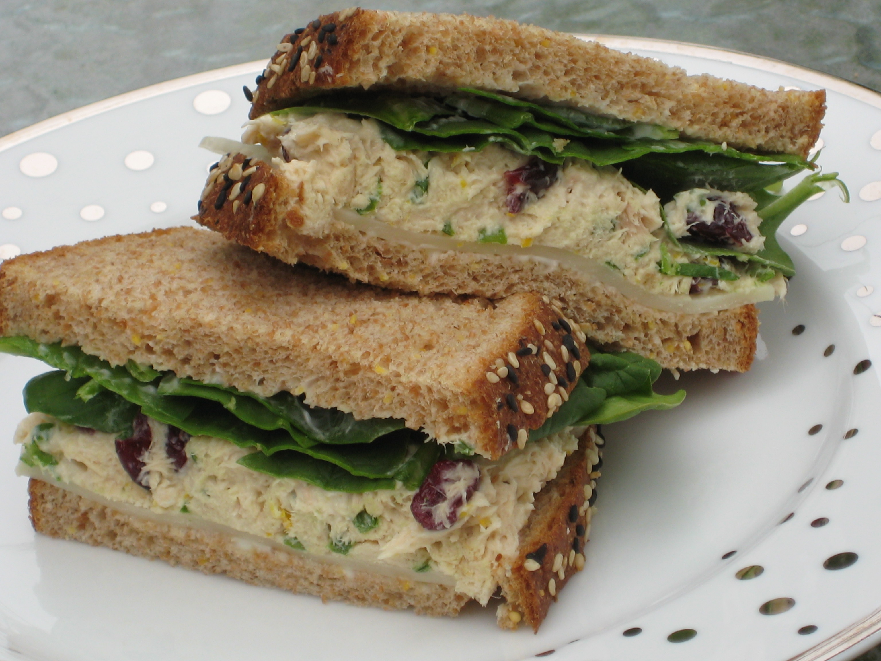 And, taking a nod from my local Whole Foods Market, I add sweetened dried cranberries to my tuna fish, instead of the usual pickle relish, to give it a healthier touch of sweet that works nicely with the tuna and lemon.